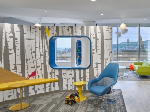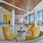 The hospital consists of 815,000 SF of new construction and 115,000 SF of renovated space of existing facilities. The lower levels of its exterior façade resemble the brownstone homes and businesses along downtown Superior Street. In contrast, the glass façade of the upper levels and patient tower take their cues from the surface of the neighboring lake. EwingCole created an interior setting that celebrates that connection to the outdoors. Visitors experience a vertical, living museum throughout the building’s interior that tells the story of Duluth’s people, history, and natural splendor. Patients and visitors may also access the roof garden overlooking Lake Superior.