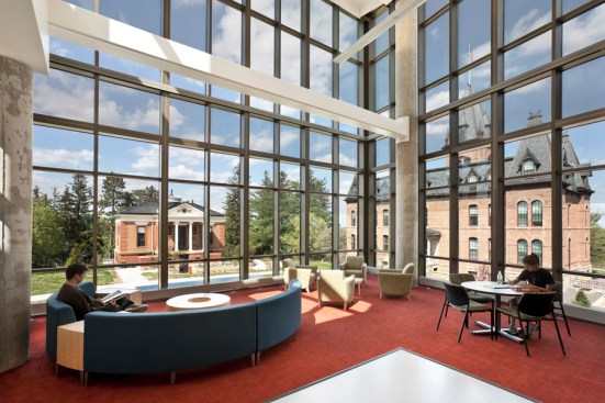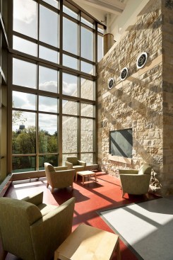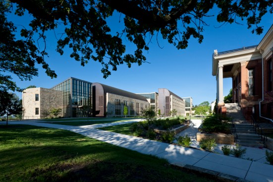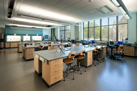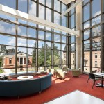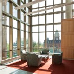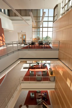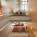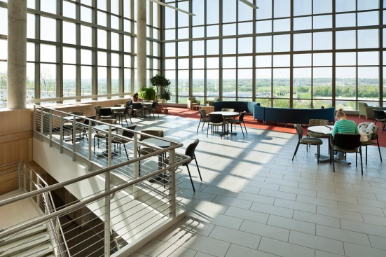 Holabird & Root’s design encourages interaction among the science disciplines by intermixing informal gathering spaces, student study spaces, and offices throughout the facility. The building’s center features a beautiful glass atrium with views out in three directions.