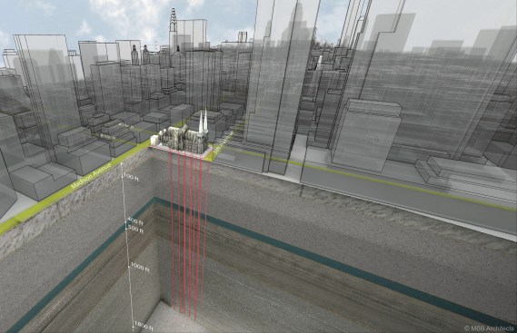 To generate power, the architects and engineers decided to add 10 geothermal wells, drilled as deep as 2,200 feet into Manhattan’s schist. Fortunately, gardens on both the north and south side of the structure allowed this work to take place immediately adjacent to the footprint of the building, rather than beneath it. After the heavy construction was completed, the gardens were updated to include new native plantings.