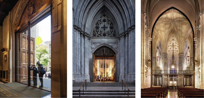The main doors on Fifth Avenue posed a considerable problem for the integrity of the building envelope. Data showed that 30% fewer people came into the cathedral when these doors were closed, which led the church to adopt a literal open-door policy. “They were basically heating the outside in the winter and cooling the outside in the summer,” Murphy says. MBB designed new glass doors that provide a necessary thermal break while maintaining open sight lines that attract more than 5 million visitors each year.
