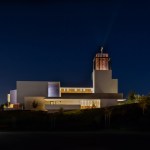 The building takes advantage of natural sea breezes for cooling. An underfloor plenum supplies conditioned air through the perforated supports of the pews.