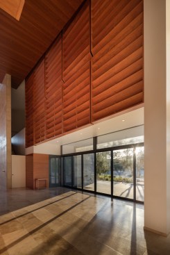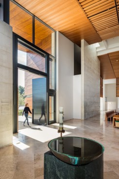 The glazed courtyard doors further increase accessibility and visual connection to the rest of the campus and its outdoor spaces which, thanks to the temperate Southern California climate, provide year-round places for contemplation and repose.