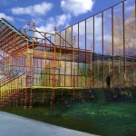 The colour scheme will be reversed in this design, accentuating the unusual appearance of this work, with its interplay between literal and non-literal symmetry. The playful dimension of this approach to design fits in with the cheery visual aspect of the Plasticarium collection on show to the public. Through the effect created by its mirrors, the reflective façade of the Trade Mart will present multiple images of the staircases –virtual, in this case.