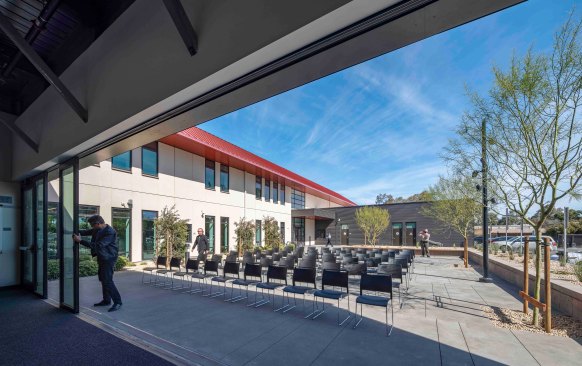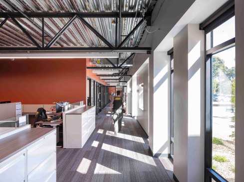 RossDrulisCusenbery Architecture Inc. provided planning, programming, design and construction phase services for a new two story 28,000 SF Public Safety Building and Department Operations Center (DOC) for the Stanford University Police Department. The new building consolidates all public safety functions under one roof and includes office and administrative spaces, Departmental Operations Center, volunteer services, officer briefing rooms, booking and evidence storage facilities, locker rooms, equipment shop and other public safety related functions. As an essential services facility, the building will incorporate Stanford Class 1 criteria for seismic performance, including survivability of non-structural components.
