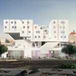 The new Star Apartments for the Skid Row Housing Trust transforms an existing one-story commercial building in downtown Los Angeles into a mixed-used complex with 102 apartments for formerly homeless individuals. Located at 6th Street and Maple Avenue along the border of Skid Row, the project sets a new model for urbanism and increased density by remodeling an existing 1-story building and adding new community spaces and residential levels above.