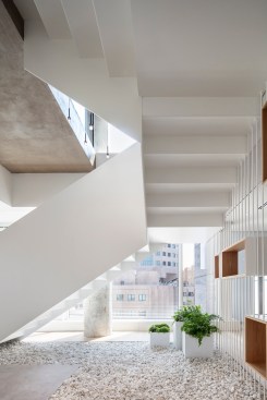 Kimmel Eshkolot Architects converted a freestanding six-story building to create working spaces, conference rooms, hosting floors and exhibition areas tailored to the meeting of two worlds: Israeli startups and global entities seeking innovation. The firm's design program begins a new chapter in Start-Up Nation Central's work, helping international organizations and businesses discover Israel's innovative technology sector, and to support the Israeli innovation ecosystem through community work and sector development.
