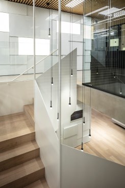 On the upper floors of the building, levels four and five host SNC's international delegations and visitors. Because hosting high-level delegations of business and government leaders is such a critical part of what SNC does, extra efforts were made to ensure that the building has an open and inviting atmosphere for guests should they be in the country for a few hours or a few days.