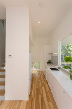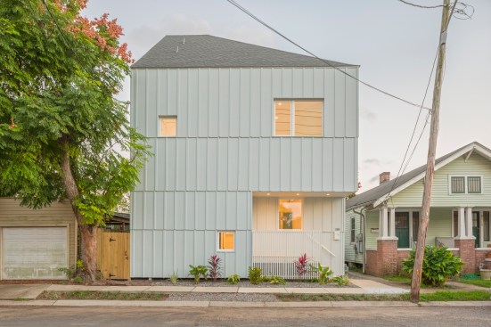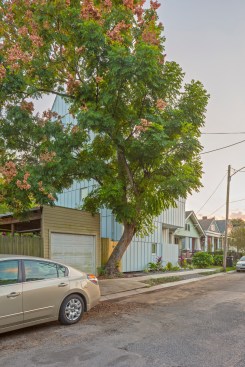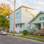 In keeping with the generalized precepts of speculative development, 4514 S. Saratoga is a standard three-bedroom, two-and-a-half-bath home. The limited site area — about a third the size of a traditional parcel in New Orleans — required program be stacked vertically and efficiently. An entry stoop was carved from the ground floor footprint and served to internally organize the main living spaces. A back porch and a small yard occupy the limited space required by setbacks. The second floor has two compact bed and bathrooms. The third-floor functions as an additional bedroom or flex space with walk-in access to a large storage area.
