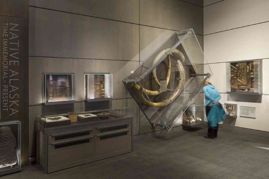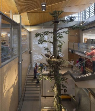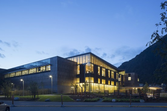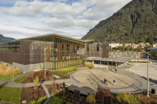 The design of SLAM is deeply rooted in Alaska’s history and landscape: the distinctive ceilings reflect the mountainous landscape that surrounds Juneau, and expansive windows have been placed to frame dramatic views of five nearby mountain peaks. The roof form, viewed from the outside, is reminiscent of bird wings taking flight, and the layout of the site emulates the fan of the docks that historically occupied this waterfront site. Many of the materials were chosen to evoke and represent the natural resources of Alaska, ensuring that the building truly reflects the origin of the community and grows in to the Juneau landscape.