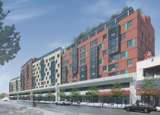 This proposed design envisions a high quality mixed-use development that provides income-diverse affordable housing and addresses the Flushing community’s need for a variety of desired services, parking, and senior housing. Two buildings of varying heights are sensitively integrated along this 400ft long site; one offering 120 residential units and the other 60 apartments for seniors with related support services. A 30,000 square-foot neighborhood health treatment center encompasses the entire 2nd floor of the complex. A variety of private landscaped roof and yard terraces complement the active public streetscape environment that was created. The building employs extensive energy saving strategies, including the use of rooftop photo-voltaic panels, in seeking a LEED silver designation.
