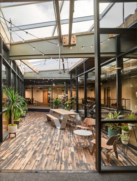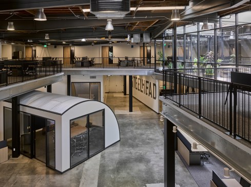 When it came time for creative modern agency Deutsch, Inc. to outfit a full-service production studio for Steelhead Productions, they called upon HLW’s Los Angeles studio to reimagine nearly 48,000-square-feet of a previously underutilized building. The adaptive reuse project in the heart of Silicon Beach included a full rehabilitation of an existing structure and the addition of a new second floor with new offices, post-production house and full capability shooting stage. HLW transformed the existing warehouse into stunning office and technical spaces, including three new dynamic mezzanines connected by a series of bridges. The overall look and feel of the space is creative with both artistic and cultural elements. Additionally, the design is innovative and “out of the box”. The completed space consists reception, offices, conference/meeting rooms, workstations, community areas, café/pantry, broadcast studio and other types of broadcast functions.