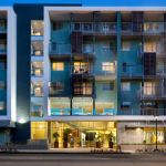 At this luxury mixed-use development, the design team mixed cost-effective wood framing with a sleek, contemporary exterior.