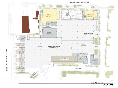 Creating an urban edge, and responding to the requirements of the Lincoln Community Design Overlay, retail spaces and a pedestrian friendly streetscape front Maxella Avenue; while Live-work townhomes and a generously landscaped setback create an otherwise rare walk-able stretch along busy Lincoln Boulevard.