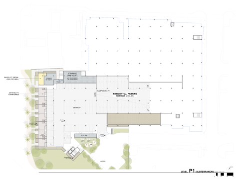 Responding to the hard urban surroundings of the building, the podium deck is conceived as an elevated ground plane promoting social interaction, and chance encounters for the resident community. Extensive planters throughout the project create intimate alcoves for private gatherings, and serve a dual purpose as an integral part of the storm-water filtration system, meeting the requirements for Low Impact Design. Additional site issues, including methane abatement, groundwater contamination and a high water table, were addressed and mitigated by the design team.