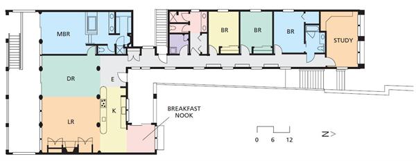 But architect Rodney Friedman loves a challenge, and he certainly faced one in designing this home. Steel helix piers anchor it to a concrete slab foundation buried under the sand, while steel columns elevate the ground floor nine feet above the sand. Inside the house, Friedman didn’t have much room to maneuver, considering the clients’ need to accommodate four generations. “At Sea Drift you can’t have a two-story house, so there was a 9- to 10-foot envelope between the floor and the roof to design in,” he says. “You can do pop-up roofs, so we did a barrel vault over the living and dining rooms and the study.” Keeping the home’s oceanfront site in mind, he graced its wide-open public areas with subtle evocations of the seafaring life. Exposed, structural ceiling rods are made from stainless steel yacht rigging, and laminated cedar column covers resemble ships’ masts. “I wanted the clients to feel like they were in an oceangoing schooner,” he says.