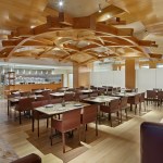 With seating for 76 people, Stir will convey a warm, intimate, and inviting ambiance. In addition to its dramatic, undulating ceiling, it will contain comfortable seating and tables designed by Gehry Partners. Its walls and ceiling will be clad in Douglas fir and its floors in red oak. The ebullient Gehry touch will be seen in a palette of materials that includes frosted glass, felt, steel, leather, bronze, and onyx. Stir has also been designed to provide views into the kitchen, providing an opportunity to see the staff at work.
