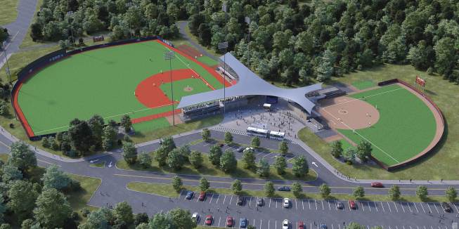 For the University softball field, the Master Plan calls for resurfacing the field from natural to artificial turf, new bleacher seats, a press box with two video platforms, two sunken dugouts, and other upgraded items.