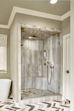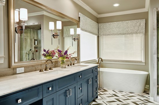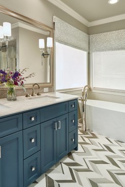 By combining the closets on the one side of the space to create one larger master closet and relocating several of the plumbing fixture locations, we were able to enhance the existing space and really open up the layout to make it more useful for the homeowners.