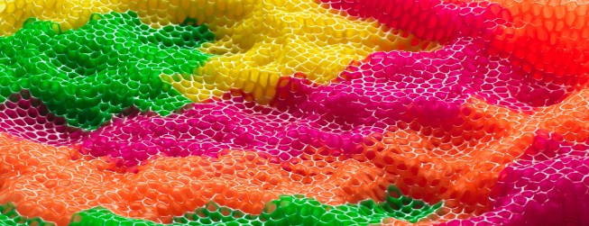 After long series of intuitive experimentation on all kinds of material, one in particular caught our attention because it stood out in terms of its aesthetic, functional and structural qualities. Called “Straw-k”, it is made of plastic tubes melted together on the surface. This type of assembly is the basis of a homogeneous material, here composed of polyethylene, which requires no binding agent (called autogenous welding). In the first place, we tested all the scientific properties of the Straw-k in terms of fabrication process and tools, structural/mechanical qualities and relation with light and sound, to evaluate its possible applications. For that, we fabricated dozens of hand crafted prototypes using different forms, lengths, diameters and colours of the plastic tubes.