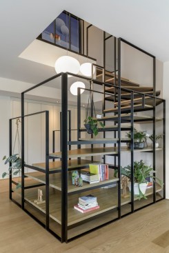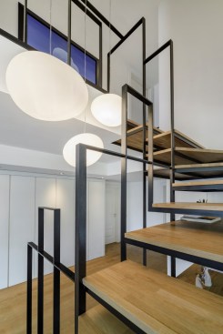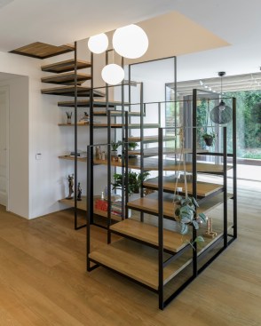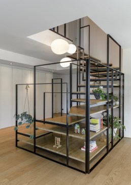 Considering its central position in the house’s layout, the design created as a focal point. With very little furniture used around the house, the whole space ended up as a very light and serene environment where the staircase stands up as a central piece regarding both form and function.