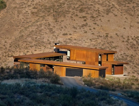 Set in the remote Methow Valley, Studhorse responds to the clients’ desire to experience and interact with the surrounding environment throughout all four seasons. The house is composed of four separate detached structures surrounding a central courtyard. Each structure is rotated toward different dramatic elements in the surrounding landscape such as the nearby Studhorse Ridge and Pearrygin Lake.