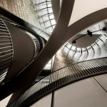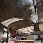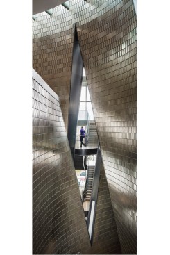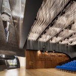 Visitors are welcomed into Studio Bell through a central lobby that opens upward through the building’s five levels. Two helical staircases on the north and the south flank the lobby and fill the interstitial space between the towers. The main performance hall overlooks the lobby, and serves as the building’s programmatic and structural center. With flexible seating and a movable acoustic wall, the performance hall can be closed for more intimate performances or opened fully to the lobby and circulation spaces to fill the entire building with music.