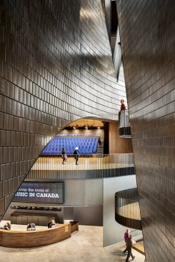 Exhibition galleries or “stages” are spread across Studio Bell’s five floors, showcasing highlights from NMC’s collection. Each stage is envisioned as a place for interaction, appreciation and performance, where Canada’s music story—past, present and future—can be further explored. Between each is a pause of space that allows the visitor to reflect and reconnect to the building and prepare for the next encounter. Sweeping views of Stampede Park and the Bow River throughout the building allow visitors to connect back to the surrounding city and landscape.