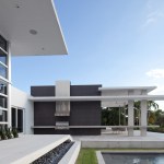 The outdoor spaces were designed with the help of a series of floating slabs to the South which provide balance for the studio structure on the North. The interplay of sliding planes, lights and darks, solids and voids echoes the tools of an artist at work, while fulfilling specific functions: The two tall concrete columns help separate the outdoor living space from the pool area as well as provide structure for the upper and lower canopies. The upper canopies provide coverage for outdoor living and sunshades, while the lower canopy serves as food prep and serving space for family gatherings.