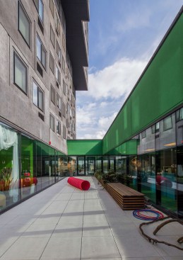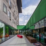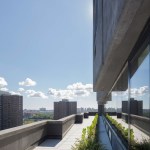 The response is a textured slab building, which crowns a 76 foot base that steps back at the ninth floor to create a ten foot terrace and cantilever on opposite sides. The textured cladding is achieved with rose embossed pre-cast panels, which achieve a textured, ornamental effect. Saw-toothed fenestration fans across both façades, referencing bay windows that are a common feature of the area. These windows also frame 360' views of New York City including Central Park, One World Trade Center in Lower Manhattan, the Hudson and Harlem Rivers and the new Yankee Stadium. Terraces are placed on the second, third, ninth, and roof levels. At the base of the building is a Children’s Museum of Art & Storytelling. The 18,036 square feet area has been designed with interactive exhibition and performance spaces and an artist-in-residence studio. The second floor will house a 12,196 square feet, light filled early childhood education center and offices for BHC are located on the ninth floor. The residences, education center and museum will be accessed from a landscaped public plaza on St. Nicholas Avenue.