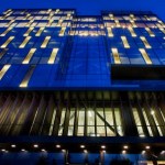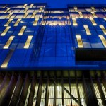 The façade of the building is given an interesting inflection by the enforced addition of triangulated steel tubular load transfer steel sections through the central column bay in the façade section of the building. This provides an interesting counter point to the some times excessively enlarged earthquake strengthened concrete columns, which are often encased as circular when they are free standing and part of an open space. The curtain walling solution is as minimal as possible in its conception, with large glass panels spanning the full height of each floor, while avoiding dark spandrel panels. Each potential cellular space is provided with an operable window the full height of the space, and which opens inwards to allow fresh air in to the space when required. These full height openings are protected from the outside with vertical strips of stainless steel mesh, with LED lighting recessed within to further highlight these points at night-time. This gives the building its final signature, which at night comes fully in to life, adding this section of the Maslak to Seyrantepe axis a curious inflexion which makes the SUMMA HQ stand out as a unique edifice in the Istanbul skyline.