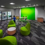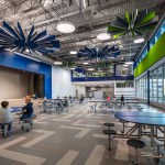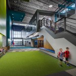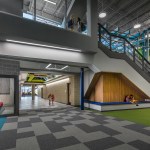 The new elementary schools have different color palettes that reinforce their individual brands but with a unified design concept. The aspiration of the design was to celebrate a global community that supports diversity, representative in circular patterns found throughout the school.