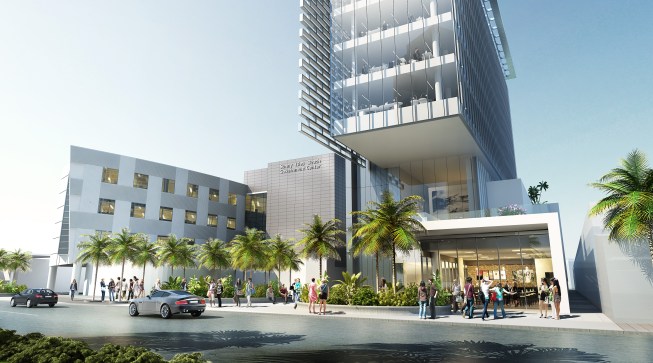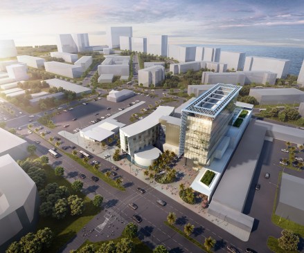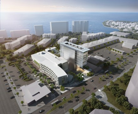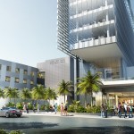 The City of Sunny Isles Beach created a Civic Precinct with the completion of the Sunny Isles Beach Government Center in 2005. Perkins&Will has been selected to design the Government Annex immediately north of Government Center; this will be a hybrid building composed of educational, office, community theater, civic and structured parking uses. This mixed-use program will allow growth for both the existing adjacent Miami-Dade County Public School as well as Civic and Community Theater programs for the City of Sunny Isles Beach. The design of the new Annex provides separate addresses and access for educational and civic / office uses and the expansion of the landscaped Collins Avenue, civic plaza. The architecture of the new building “floats” the civic and office uses above the lobby and pre-function spaces of the Annex affording continued visibility of the existing Government Center. The material palette continues the use of textured architectural precast concrete and hurricane-impact glazing while introducing an aluminum solar veil along the southern exposure. Perkins&Will is responsible for all of the architectural and interior design efforts for the project.