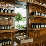 The design reflects the hotel’s larger theme, an alluring mix of ancient jungle and modern art with a sense of relaxed sophistication and a down-to-earth vibe. Guests are greeted by undulating walls of handmade tile and then enveloped in the spa’s communal sitting room — a stylized version of Surya Spa’s original Pacific Palisades kitchen and the heart of a true Surya experience.