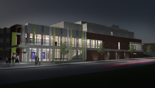 The addition addresses an overcrowding issue in the current school building, while providing useful spaces for the specialized theater and arts program in the school.
