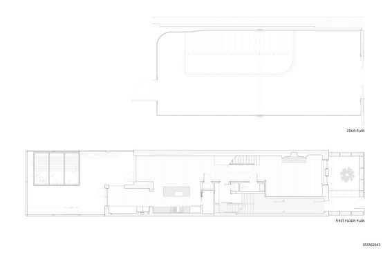 Our goal for this duplex garden apartment was to create an open, airy interior space that connected visually and physically to the exterior. Our biggest obstacles were a lack of daylight, light due to the fact that it was a garden apartment, and the fact that the shared building stair (for the other townhouse occupants) made a narrow bottleneck at the center of the floor plan. We maximized glazing at the rear that light could reach the center of the building. At the front, we created a sunken courtyard wrapped in zinc to reflect stolen light into the living room. In order to allow as much visual connection between these spaces, we created a communicating stair for the duplex that was as airy and light as possible.