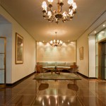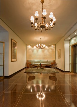 20 Sutton Place South was designed by the architectural firm of Boak and Raad and built in 1954; it is typical of the many apartment buildings built by developers in the 1950s in New York City. FBA was retained by the Board of Directors to renovate the lobby, which had been altered in a Colonial Revival style with a dark wood wainscot, beige wall paper, faux wood graining on the elevator doors, a heavy crown molding and a full height wood screen hiding the graceful curved that formed the end of the space.