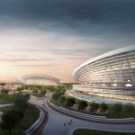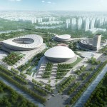 Suzhou is famous in China for its landscape design, and the master-plan for this new sports park is based on this tradition. In a modern interpretation of the city’s traditional gardens, an informally designed park landscape flows around the podiums that rise in straight lines from the surrounding streets and support the stadiums. The curved roofs of the stadiums give the impression of pavilions, marking the high points in this landscape. As visitors walk along the curved pathways, various vistas open up to water features, pavilion architecture, and the landscape. The site opens out to the Xietang River to the south, with various sports grounds embedded in the landscape.