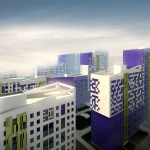 The yards will be closed for car acceptance. Children’s playgrounds and leisure zones will be arranged there. The large promenade area will be also provided within the district with bicycle and roller skates paths.