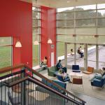 Environmental stewardship also was important. The team planted a green roof on the two structures, and specified solar shading, fritted and low-E glass, and natural ventilation.