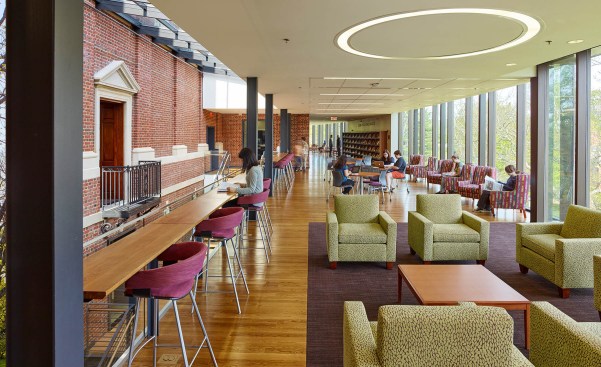 “The brilliance of the design and material choices that revealed the segments of the historic Cram building lost for decades due to a poor addition project in the 1960’s has established the newly renovated library facility as the most popular and effectively used building on campus. Through the collaboration with VMDO, Sweet Briar achieved its goals of a modern, welcoming, flexible and functional library that will serve us for the next 100 years.” – John Jaffe, Director of Integrated Information Systems/CIO, Sweet Briar College