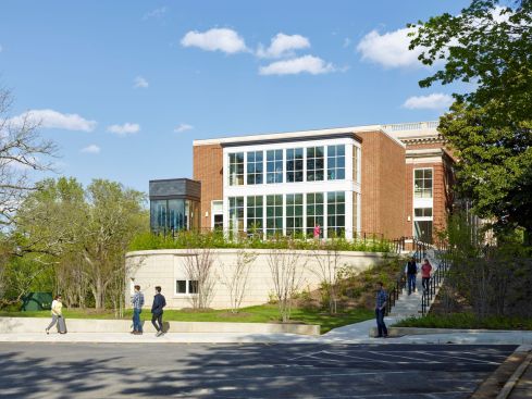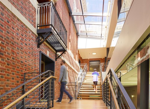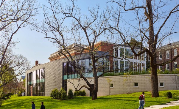 VMDO’s addition to Cram’s library aims to respect the architect’s vision for the building by strategically locating new programs around the original core of the structure while preserving its historically significant elevations and major public spaces. “Liberating” the Library from a cramped 1965 addition that buried much of Cram’s design, the addition reinvigorates sight-lines to campus, enhances daylighting, and opens up the original architecture while preserving the building’s continued use as a library. The modern yet complementary addition employs traditional materials featured in the campus context – including cast stone masonry, slate, and brick – ensuring that the historic design of the library remains dominant.
