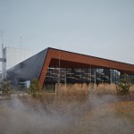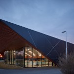 The shape of the public swimming pool is significantly influenced by its location characteristics, so that this new element becomes a natural part of the place. Above all, this influence manifests itself in a generous opening of the pool area to the south into a park garden, and on the other hand in a closing on the north façade with the exception of local openings, such as a cooling terrace protruding from the spa area, from which you can observe exceptional curves of the Bohemian Central Mountains. This solution is accented by a distinct inclination of the roof corresponding to the slope of the local terrain and a tapered northern façade allowing the required greater ground clearance in the pool area; conversely, a lower ground clearance in the northern tract. There you can find rather smaller areas of spa, showers and children’s pool, which do not require a high ceiling. The diversity of the sloping terrain is captured in the grooves sectionalising the façade of the building, which demonstrates a strong connection of the building with the local terrain context. The slope of the roof cladding corresponds to the most significant slope of the terrain.