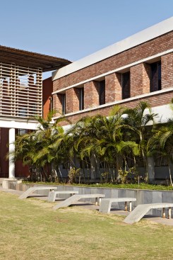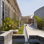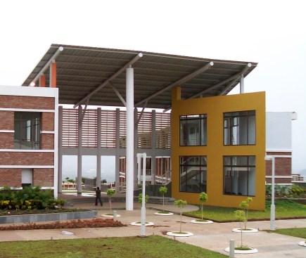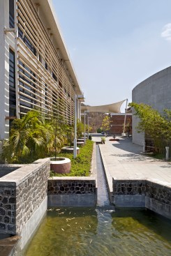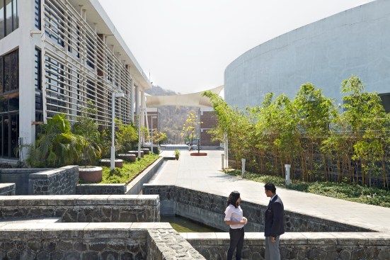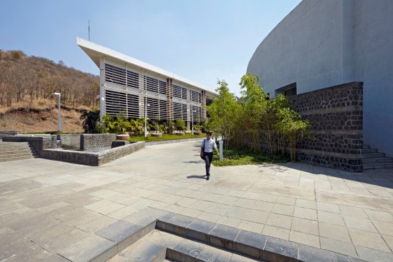 Innovation with materials and construction techniques imparts a distinctiveness to the unique forms and textures observed across the campus. The campus has been well integrated in its natural surroundings and connects the occupants to nature. Pune’s local architecture includes historic buildings made in locally available basalt stone and are built around a courtyard which was used as a social space. The spatial planning and built forms of the Symbiosis campus respond to the local architecture of the region.