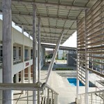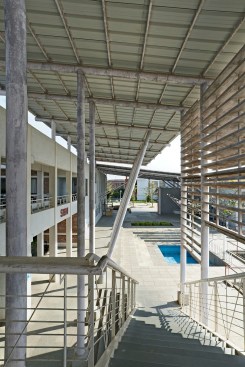 The morphologies of the buildings and transition of spaces are planned according to climatic considerations. The academic buildings are oriented along the North-South axis and all learning spaces face North with large windows that allow ample glare-free light into study areas while a continuous corridor shades the southern façade. The inner envelope of the buildings is composed of circulation elements such as open corridors, shaded verandas and steel staircases forming ‘semi-outdoor’ areas, functioning as spill-out zones and break-out spaces for students. Buildings are designed to be open and transparent, to showcase the thriving functions inside which in turn influence the activities surrounding them on the outside.