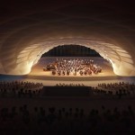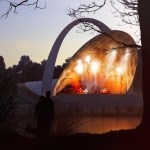 The brief called for design proposals to maximise the flexibility of the 1976-designed theatre for a variety of performances on the stage, and to add a new roof to enclose both the stage and the audience. The underside of the roof, which covers the stage and front of auditorium, will enhance and project the natural acoustic for orchestral events. This is achieved by a roof which is structurally independent of the existing arch, and is formed y a curved truss which serves as the edge beam to a single cable net structure. This net supports a series of inflated fabric roof panels and suspended acoustic reflectors. Two