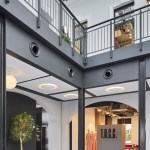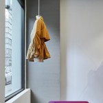 The poufs, hangers and a large mirror were used throughout the project as a continuation of the similar design elements.