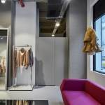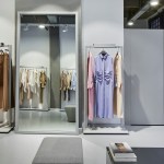 The cubical geometry at the entrance with its changing room function also affects the preservation of symmetry in the areas included in this semi-open setup. The symmetrical setup is completed with the triple armchair, which can be considered as another “statement” furniture.
