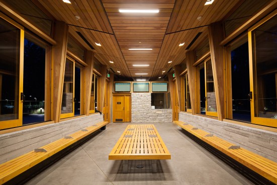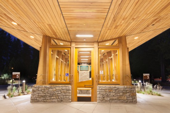 The Tahoe City Transit Center, a stunning representation of modern sustainable design, includes an 1,100sqft facility with indoor and outdoor waiting area and administrative space. The small-footprint structure features native red cedar planking as the roof canopy. Lighting both the interior and exterior is a·light's recessed D3 | accolade3 in 4ft lengths with WISP lens, surface mounted flush to the wood slats, to create the appearance of a recessed fixture.