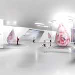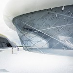 The landscape rises to meet the building located at the end of the major axis. Large windows at the scale of the galleries offer a glimpse into the facility. A grand exhibition hall spans the length of the building along the north-south axis. The exhibition hall is a large, versatile space. The facility is designed for optimum flexibility, and is capable of housing a variety of venues. From inside the grand hall there are framed views to the exterior. A panoramic view of the park is seen to the south and there are views of the city to the north.