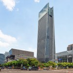 The tower is occupied primarily by offices, with restaurants featuring dramatic views on the top three floors. The architectural design, inspired by the image of two hands joined in a prayer of thanks and peace, expresses the insurance company’s gratitude toward its customers and desire for them to enjoy health and peace. A low-rise “Retail Annex” and the “Cultural Entrance Annex,” a multi-purpose cultural hall, adjoin the tower on either side, linking horizontally to the bustle of the surrounding neighborhood.